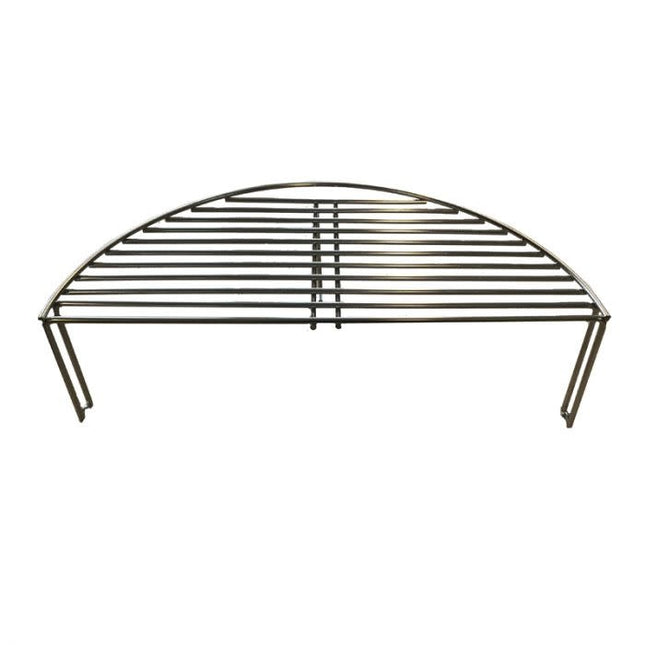Bovenin plaatsen we het RVS rooster, en de medium Bastard grill elevator die we van de week gebruikten laten we nu met 2 pootjes door het rooster zakken en het derde pootje ondersteunen we met een stevig gevouwen strookje alufolie. De temperatuur stoken we op naar 250 graden.