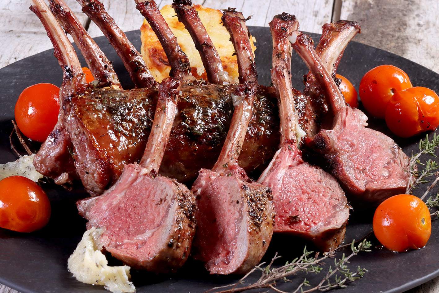 Waards lamshaasjes in Ansjovis Tijmboter met verse Tortelloni (gevulde pasta met Ricotta en Spinazie) en verse pesto