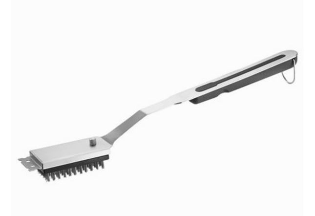 Gefu - Schoonmaakborstel Houd je barbecue in topconditie met de Gefu Schoonmaakborstel. Dankzij de dicht geweven stalen spiralen verwijdert deze borstel moeiteloos hardnekkige, aangekoekte resten — veel effectiever dan traditionele borstels met haren. De optimale hellingshoek tussen handgreep en borstelkop zorgt voor maximale kracht en controle tijdens het schoonmaken. De drievoudige draad-borstelkop bereikt eenvoudig alle hoekjes van je grillrooster, terwijl de geïntegreerde schraper ook het hardnekkigste vuil losmaakt. Gemaakt van hoogwaardig RVS, kunststof en metaal, met een ophangoog voor handige opslag. Een duurzame en krachtige reinigingstool voor elke BBQ-liefhebber.