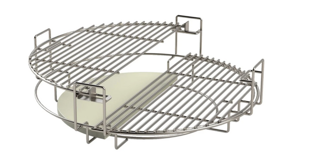 Het Multilevel Cooking System maakt jouw Grill Guru Large een stuk veelzijdiger. Dit slimme systeem, bestaande uit een roestvrijstalen frame, twee half moon deflector plates en twee half moon roestvrijstalen grillroosters, biedt je meer controle over het kookproces. Het geeft je niet alleen extra ruimte, maar verdubbelt ook het grilloppervlak, zodat je meer gerechten tegelijkertijd kunt bereiden. Ideaal voor het bereiden van verschillende gerechten of het koken op meerdere niveaus, waardoor je meer uit je BBQ haalt!