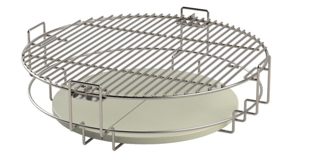 Ben je een fan van indirecte bereidingsmethoden, zoals het roken van een hele kip of zalm, het langzaam garen van grote stukken vlees, of het braden van spareribs en pulled pork? Dan is de Grill Guru Plate Setter (heat deflector) onmisbaar. Deze keramische warmteplaat zorgt ervoor dat je Grill Guru werkt als een oven, waardoor je vlees, groenten en vis gelijkmatig garen zonder te verbranden. Daarnaast is de Plate Setter ook essentieel voor het maken van de lekkerste pizza’s, vooral in combinatie met een pizzasteen. De keramische Plate Setter Set bestaat uit twee onderdelen: een roestvrijstalen houder en een losse ronde steen van cordierietkeramiek.