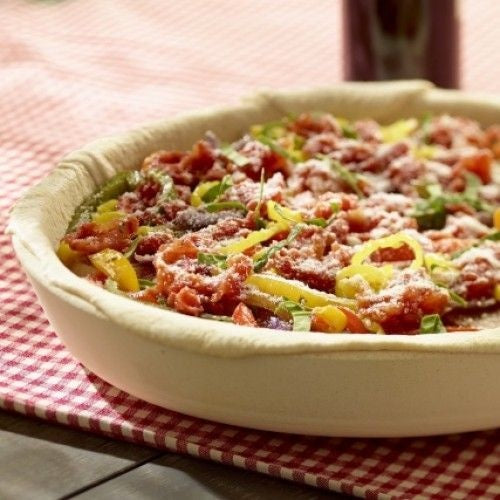 De Deep Dish Baking Stone is een praktische, keramische baksteen met een handige opstaande rand. Hierdoor kunt u deze niet alleen gebruiken om pizza’s in te bakken maar bijvoorbeeld ook als quiche– of taartvorm, om lasagne in te maken of een bepaald broodsoort. Door de perfecte warmteverdeling van het keramiek is een gelijkmatige garing garandeerd. De Deep Dish Pizza Stone heeft een diameter van 36 cm en is 5 cm hoog. Ideaal voor het bakken van pizza’s, hartige taarten en brood. Geschikt voor de XL en L. Afmeting 36×5 cm