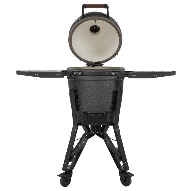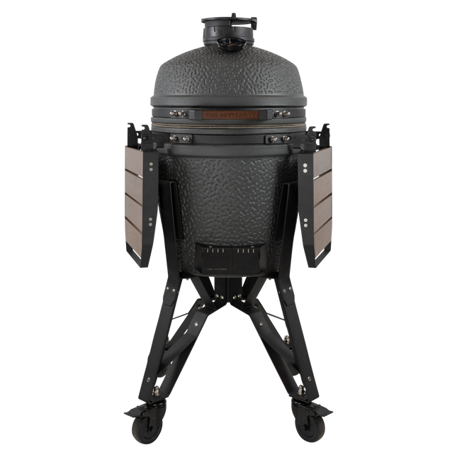 The Bastard VX Medium Complete – Geavanceerde kamado voor serieuze buitenkoks The Bastard VX Medium Complete is de ultieme kamado BBQ voor wie maximale controle, gebruiksgemak en prestaties wil combineren. Dankzij het vernieuwde VX-design – met o.a. een precisie topcap en verbeterd scharniersysteem – biedt deze kamado alles voor de veeleisende BBQ-liefhebber. Het medium formaat is ideaal voor 4 tot 8 personen en past perfect in elke tuin of op elk terras. Of je nu grilt, rookt, bakt of slowcookt: de VX Medium Complete is ontworpen om je bij elke bereiding te ondersteunen met betrouwbare resultaten en een hoog afwerkingsniveau. Waarom kiezen voor The Bastard VX Medium Complete?• VX-ontwerp: Inclusief gietijzeren topcap en soepel scharniermechanisme• Veelzijdige prestaties: Grillen, roken, bakken, slowcooken en pizza’s maken• Stevig en duurzaam: Extra dik RVS grillrooster (6 mm) en solide keramiek• Volledig uitgerust: Inclusief Plate Setter, RVS houtskoolmand en aslifter• Perfect formaat: Ø 42 cm grilloppervlak – geschikt voor 4 tot 8 personen• Matte afwerking: Stijlvol, modern en weerbestendig ontwerp Of je nu begint of al jaren grilt: de VX Medium Complete tilt jouw BBQ naar het volgende niveau.