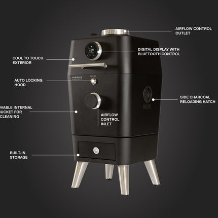 Gedaan met gedoe met aanmaakblokjes en lange wachttijden! Met de zelfstartfunctie en een kinderslot activeer je met één druk op de knop een elektrische spiraal die binnen 10 minuten de perfecte temperatuur bereikt. Dit betekent sneller grillen, roken of slowcooken zonder concessies aan de smaak.