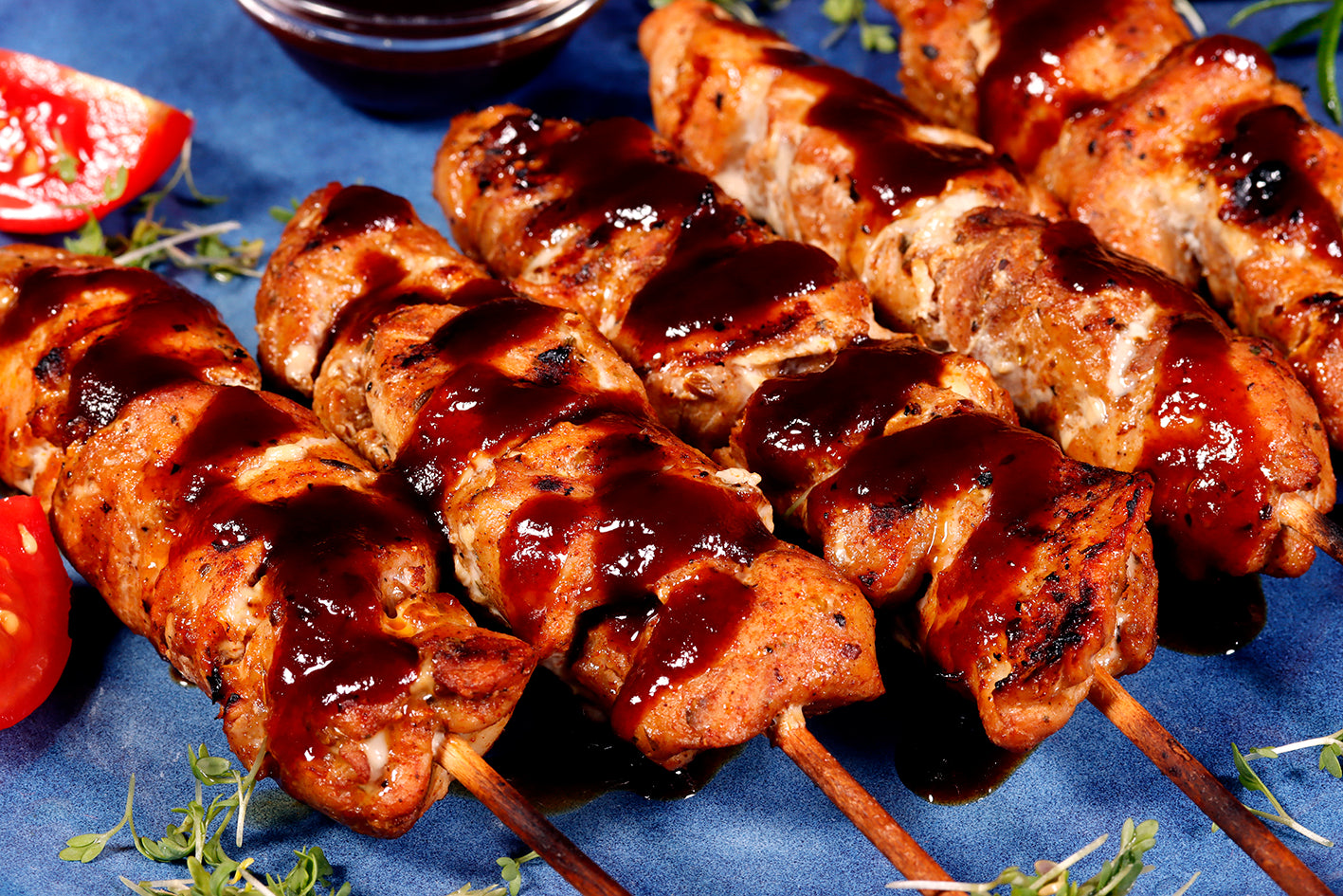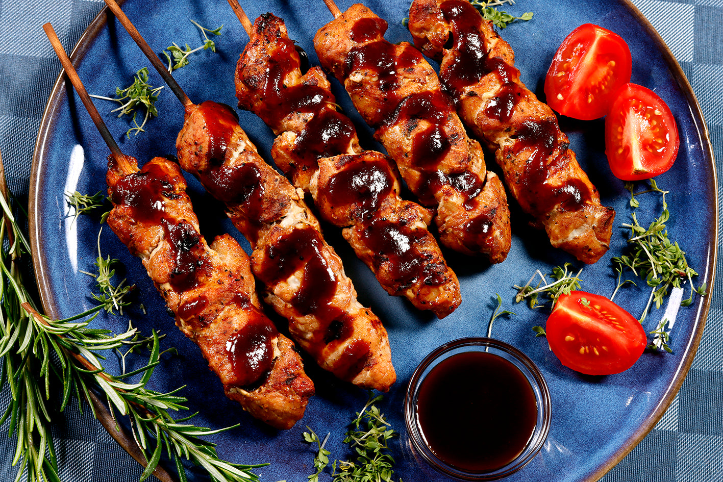 Maak de spiesjes helemaal af met de rokerige Grate Goods Memphis Style Sweet & Smokey BBQ Sauce