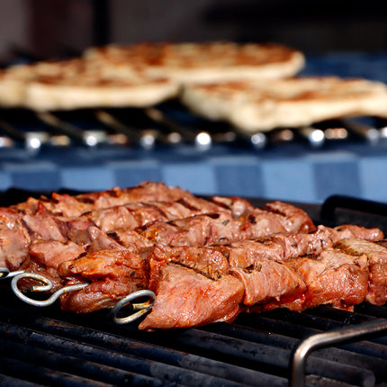 Grill de spiesen op hoge directe hitte en draai ze regelmatig tot ze rondom mooi gekleurd zijn en nog lekker sappig van binnen. Serveer ze met flatbread, tzatziki en gegrilde groente en je hebt die Griekse taverna-sfeer zó op tafel.