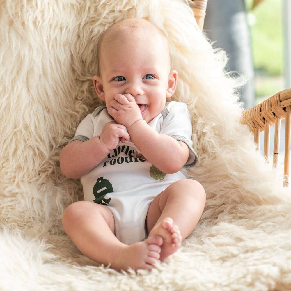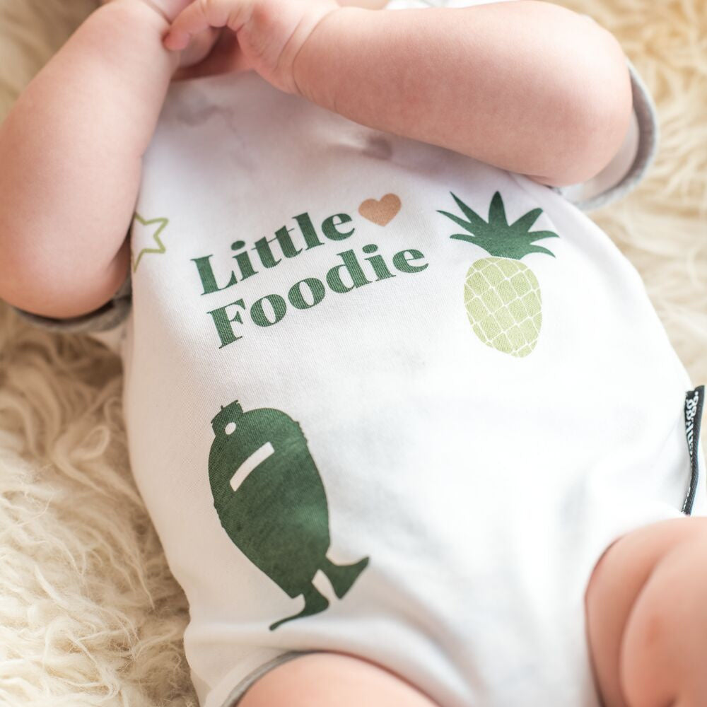 Voor alle EGGers met een kleintje op komst hebben we een toepasselijke baby romper met de tekst: Little Foodie. Met zulke ouders kan het natuurlijk niet anders dan dat dit kindje gek is op eten! De witte push buttons onderaan de romper zijn lekker praktisch.