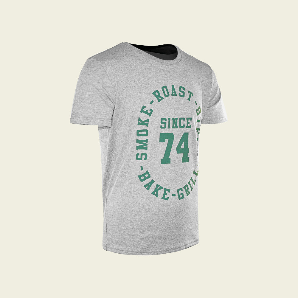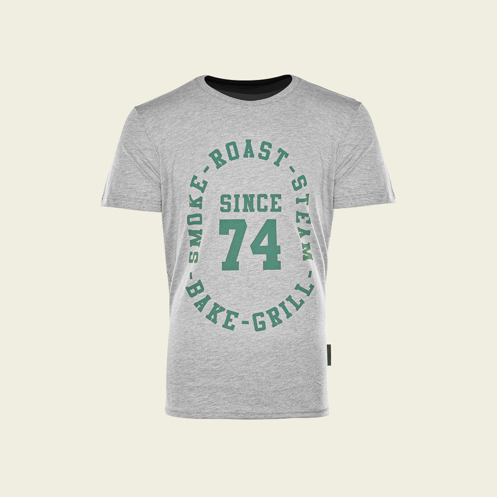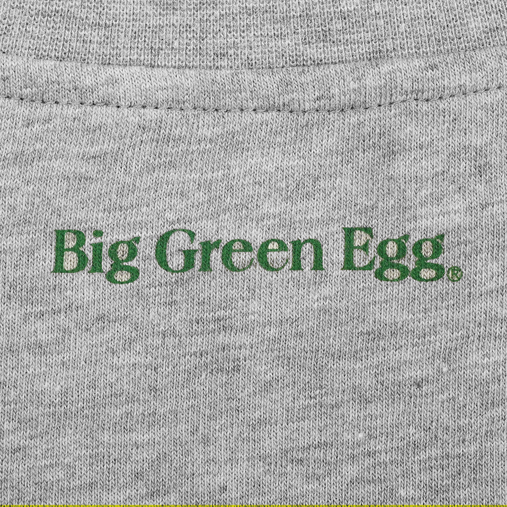 Gebruik jij je Big Green Egg om te roken, roosteren, stomen, bakken en grillen? Dan is dit houtskoolgrijze T-shirt jou op het lijf geschreven. De print in zwarte retro letters op de voorkant van het T-shirt zegt alles. Do we have to say more? Op de bovenkant van het rugpand staat in kleine zwarte letters de tekst ‘Big Green Egg’. Een ander stijlvol detail is de passende, donkergroene bies aan de binnenkant van de boord van het shirt.