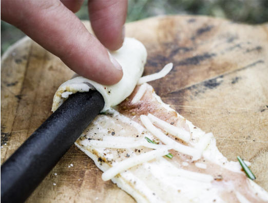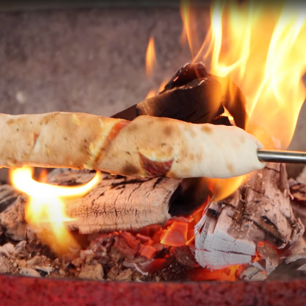 De telescopische stang is traploos verstelbaar van 70 tot 107 cm, waardoor je altijd op een veilige afstand van het vuur kunt werken. De gietijzeren punt verdeelt de warmte gelijkmatig, wat zorgt voor een perfect goudbruine korst en een gelijkmatige garing van je brood of deeg. Dankzij de handige insteekhulp blijft het deeg stevig op zijn plek, zelfs tijdens het draaien.