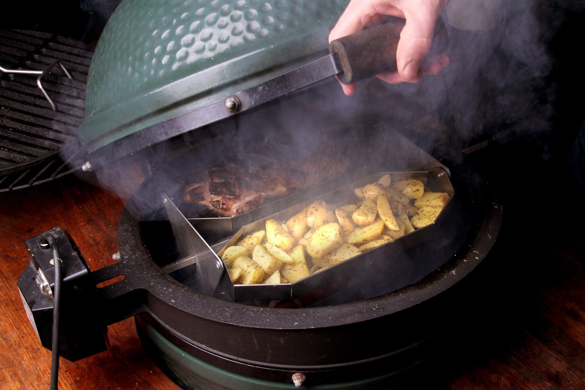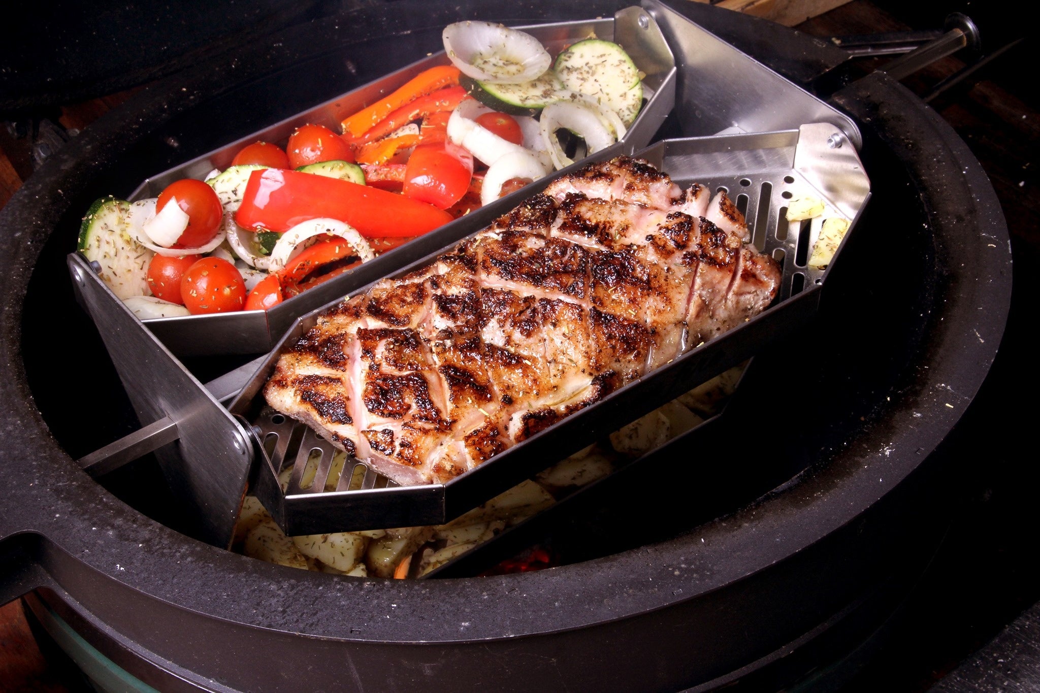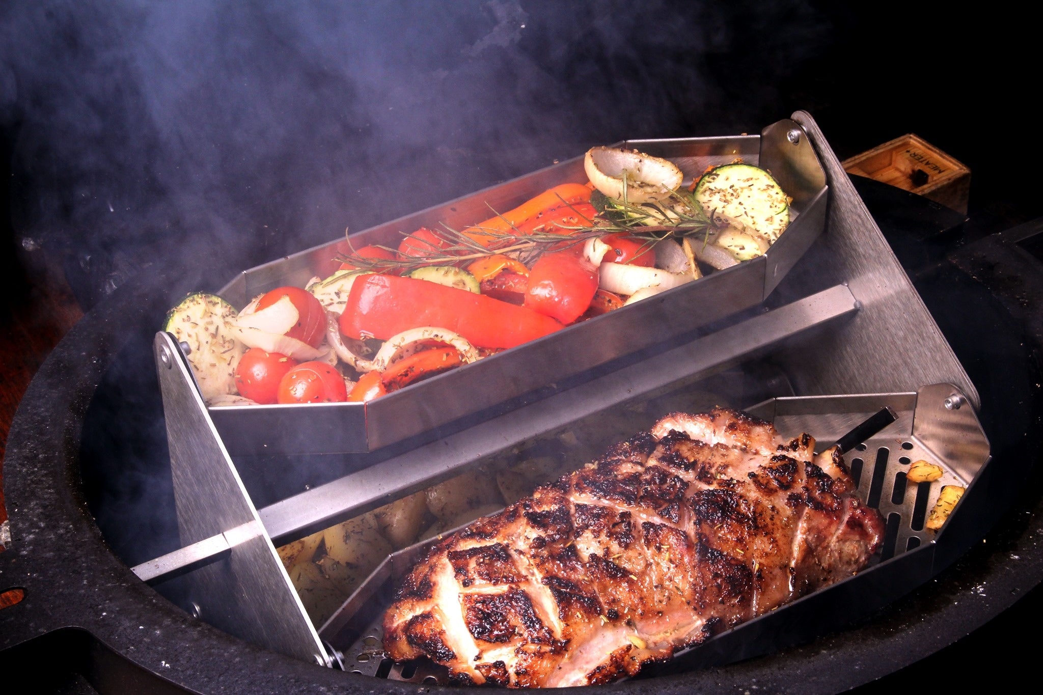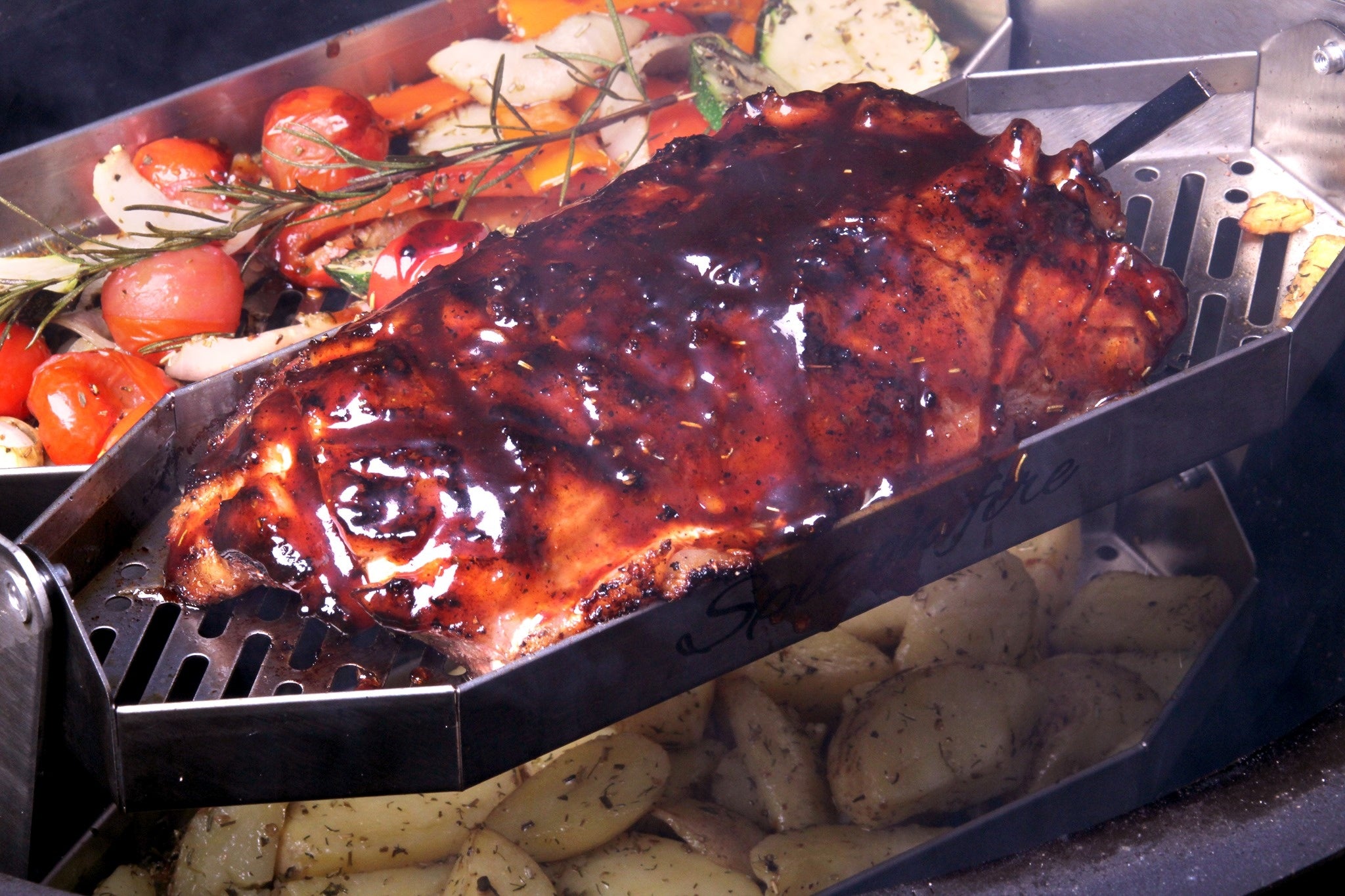 Buikspek spareribs of gerookte zalm het kan allemaal. Mede door de roterende beweging die de manden krijgen binnen de gesloten barbecue. Ja hierdoor krijgt het eten een egale garing. Je spareribs zijn binnen 3 uur gaar bijvoorbeeld.