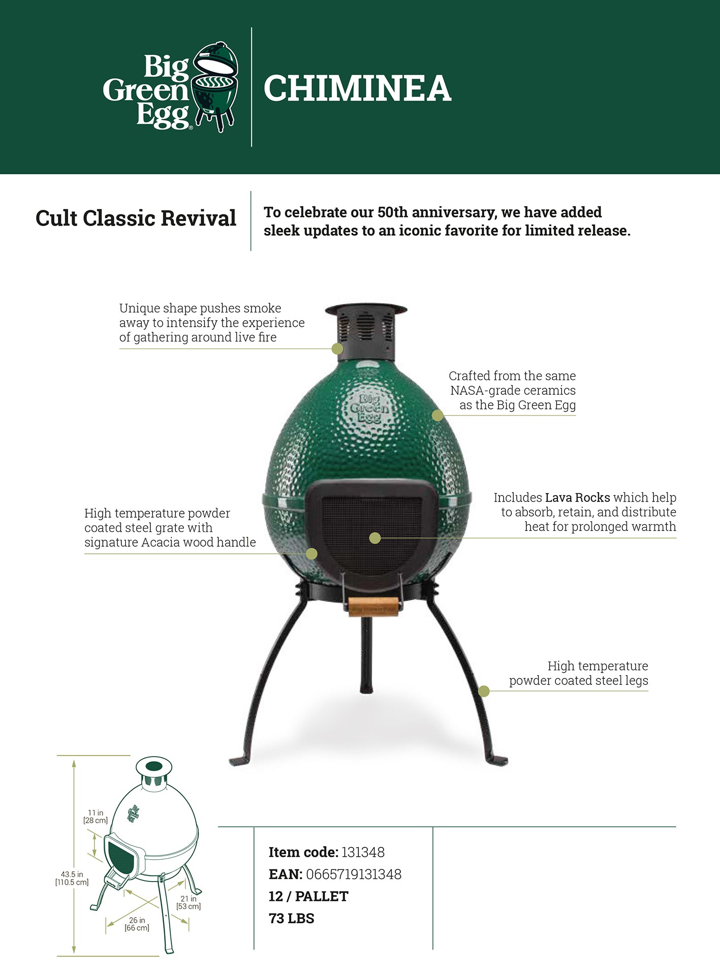 Ter ere van het 50-jarig jubileum brengt Big Green Egg een echte klassieker terug: de exclusieve Chiminea buitenhaard. Deze limited edition is een unieke eyecatcher voor je tuin of terras en staat garant voor warmte, sfeer en kwaliteit.