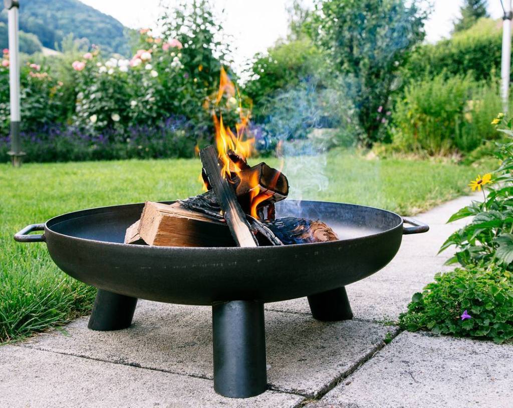 Cook King solide stalen vuurschaal op 3 stabiele poten om gezellig vuur in de tuin te verstoken, maar tevens geschikt voor om buiten op te koken op een grill ring of op een eeuwenoude manier met Finse rookplank.