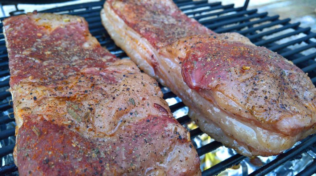 Kruid het buikspek slechts licht met zeezout en zwarte peper om de authentieke smaak van het vlees te respecteren.