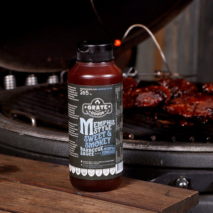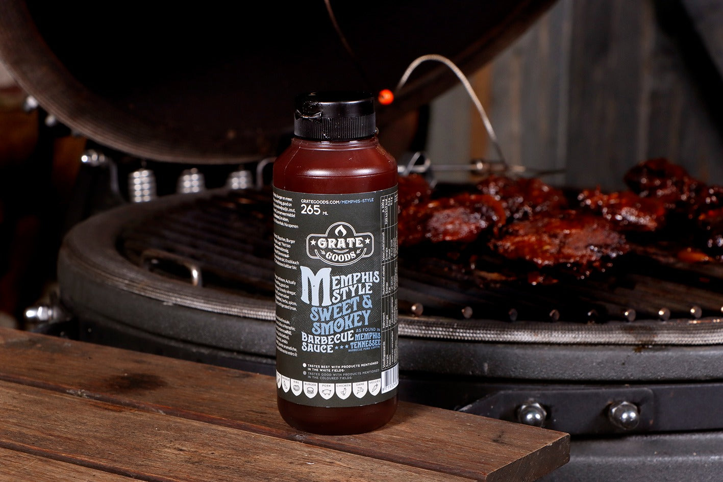 We lakken de wangen op het rooster af met Memphis Style Sweet and Smokey BBQ sauce van Grate Goods, Deze geeft nog even iets zoets en sticky aan de wangetjes.