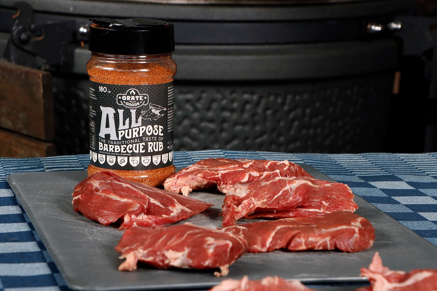 Dan kruiden we ze met Grate Goods 'All purpose rub'.