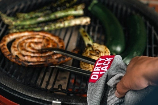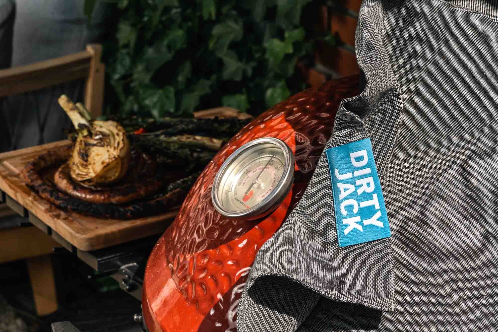 Gebruik je DIRTY JACK ook gewoon bij het barbecueën. Hij is robuust, kan tegen een stootje en is wasbaar tot 95 graden.