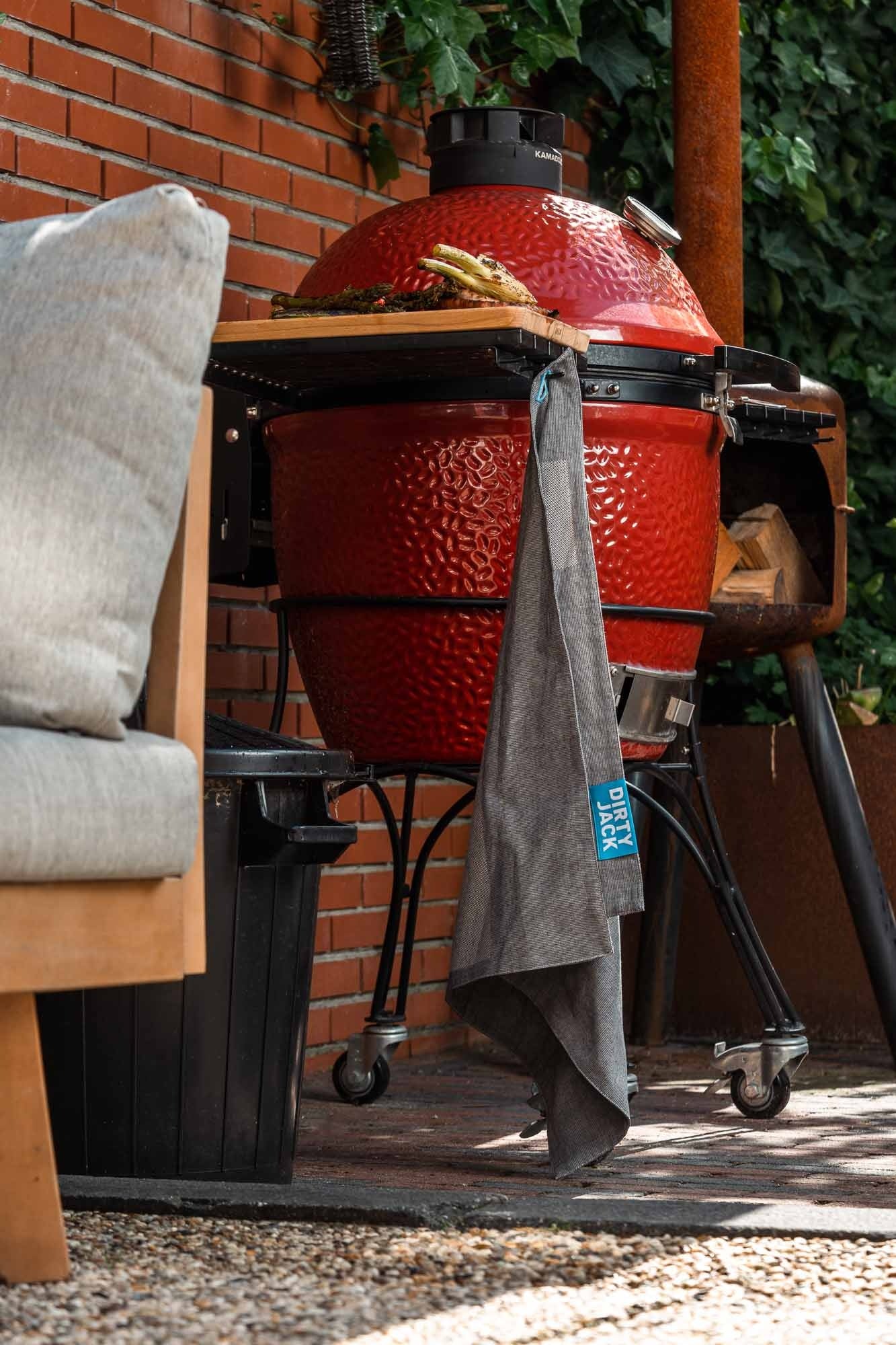 Gebruik je DIRTY JACK ook gewoon bij het barbecueën. Hij is robuust, kan tegen een stootje en is wasbaar tot 95 graden.