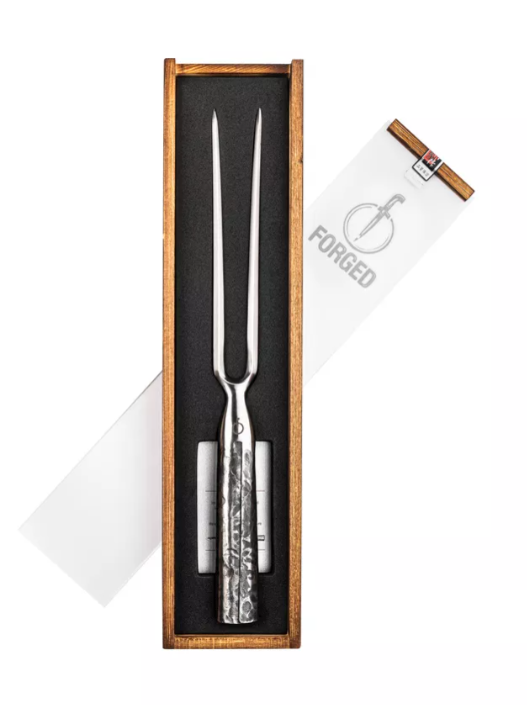 Met zijn robuuste uitstraling en hoogwaardige afwerking voegt deze trancheervork niet alleen functionaliteit, maar ook stijl en elegantie toe aan je tafel. Combineer hem met een bijpassend Forged mes voor een indrukwekkende presentatie en een ultieme snijervaring.