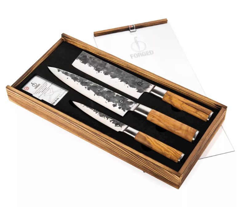 De Forged Olive 3-delige messenset is de perfecte basis voor elke (hobby)kok die waarde hecht aan kwaliteit, design en vakmanschap. De set bevat een koksmes, hakbijl en universeel mes – samen goed voor vrijwel elke snijklus in de keuken.