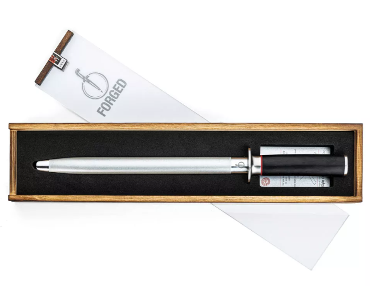 Houd je messen in topconditie met het Forged Sebra Diamanten Aanzetstaal. Dit hoogwaardige aanzetstaal slijpt je messen niet, maar richt de bramen op het snijvlak waardoor je mes scherp blijft en precisie behoudt bij elke snede.