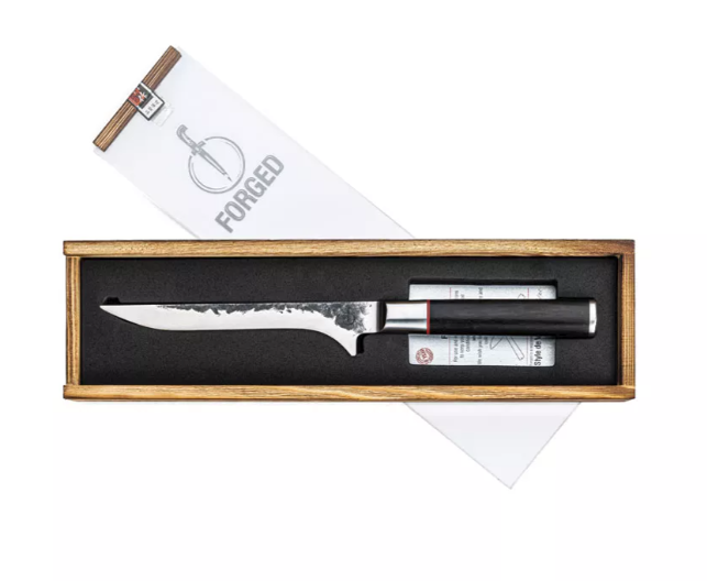 Het Forged Sebra uitbeenmes is speciaal ontworpen voor het uitbenen van vlees en gevogelte. Het lange, slanke lemmet maakt het eenvoudig om nauwkeurig langs botten en gewrichten te snijden, waardoor je moeiteloos mooie stukken vlees prepareert.