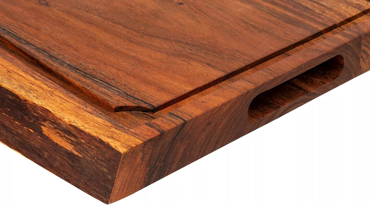 Maak elke snijbeweging krachtig, stabiel en stijlvol met de Forged Snijplank Large uit de Essentials serie. Deze robuuste snijplank is vervaardigd uit duurzaam acaciahout, bekend om zijn lange levensduur en prachtige natuurlijke uitstraling. Dankzij het royale oppervlak heb je alle ruimte voor het snijden van vlees, groenten, brood en meer.