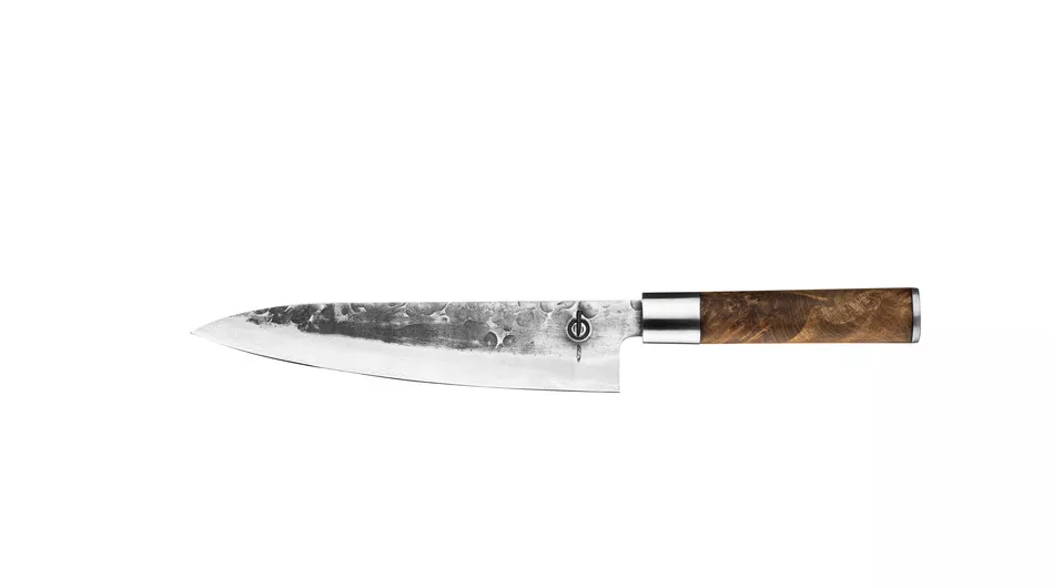 Het Forged VG10 Koksmes met leren hoes is het meest veelzijdige mes in de keuken – een absolute must-have voor iedere (hobby)kok. Perfect voor het snijden van vlees, vis, groenten en het fijnhakken van kruiden. Het klassieke Europese lemmet zorgt voor optimale controle en precisie bij elke snijbeweging.