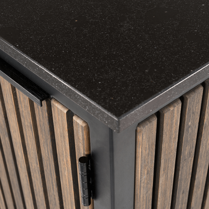 Ontdek de Fraaii Buitenkeuken Inferno Bamboo Graphite Rhombus, een perfect voorbeeld van stijl en praktische functionaliteit voor uw buitenkookavonturen.