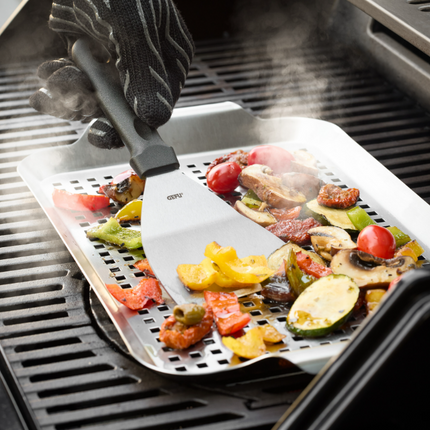 De Gefu BBQ XS Spatel is de ideale tool voor het nauwkeurig draaien van vlees, vis of groenten op de barbecue. Dankzij het slanke, slimme ontwerp glijdt de spatel moeiteloos onder je gerechten, zodat je ze eenvoudig kunt omdraaien zonder te scheuren of te beschadigen.