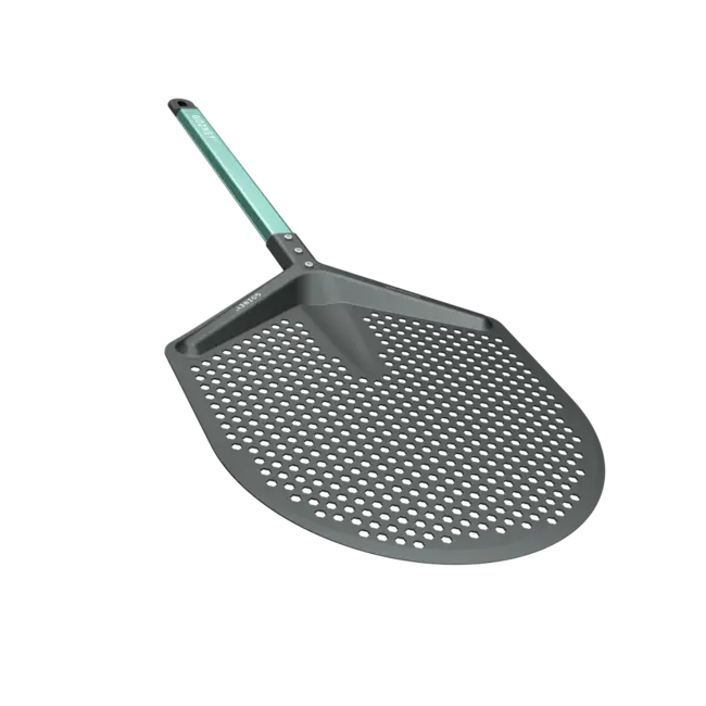 Het verlengstuk van je arm – ontworpen met input van professionele pizzabakkers. Het volledig geperforeerde blad laat overtollig bloem verdwijnen zodat je pizza niet verbrandt. De afgeronde rand helpt je bij het vormen en soepel afschieten van pizza’s tot 16 inch. Lichtgewicht, volledig aluminium en perfect gebalanceerd voor snelheid en precisie.