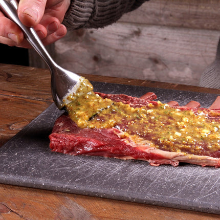Hertenvlees heeft een verfijnde wildsmaak die goed samengaat met krachtige kruiden zoals tijm, rozemarijn en jeneverbes. Een rub met knoflook, zwarte peper en zeezout versterkt de natuurlijke smaak. Wil je een extra luxe touch? Bestrijk het rack met een glaze van honing en balsamico of serveer het met een rodewijnsaus.
