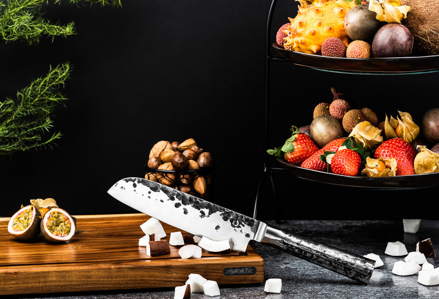 Het Forged Intense Santokumes 18 cm is de Japanse variant van het koksmes en een onmisbare allrounder in iedere keuken. Het woord ‘santoku’ betekent ‘drie deugden’, een verwijzing naar de drie belangrijkste snijfuncties: plakken snijden, blokjes maken en fijnhakken. Met dit mes snijd je moeiteloos vlees, vis, groenten en kruiden, terwijl de uitstekende balans en scherpe snede zorgen voor maximale precisie en controle. Het handgesmede lemmet van hoogwaardig Japans 440C staal garandeert duurzaamheid, scherpte en een langdurige kwaliteit. Het mes wordt geleverd in een luxe houten kistje en komt met 10 jaar garantie, ideaal voor zowel de gepassioneerde hobbykok als de professional.