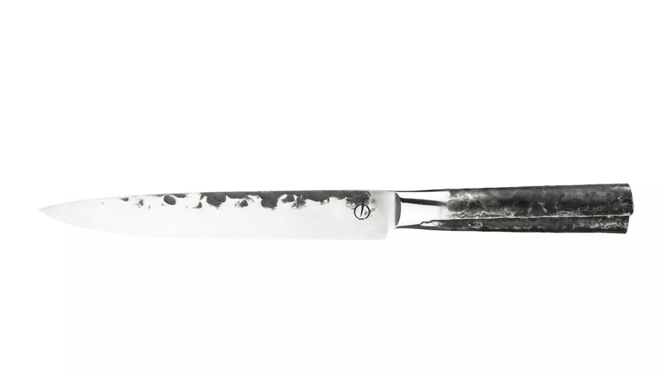 Het Forged Intense Vleesmes is speciaal ontworpen voor het trancheren van vlees en vis met precisie en gemak. Het lange, smalle lemmet vermindert de weerstand tijdens het snijden, waardoor je moeiteloos gelijkmatige plakken kunt snijden zonder dat het vlees aan het lemmet blijft kleven. Het mes combineert vakmanschap met hoogwaardige materialen: handgesmeed Japans 440C staal garandeert scherpte, duurzaamheid en een lange levensduur. Verpakt in een luxe houten kistje en geleverd met 10 jaar garantie, dit mes is een must-have voor de gepassioneerde kok die topprestaties in de keuken wil.