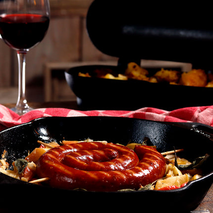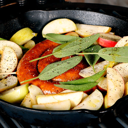De smaak combi van de pittige JC worst met de zoetzure appeltjes is echt heerlijk.