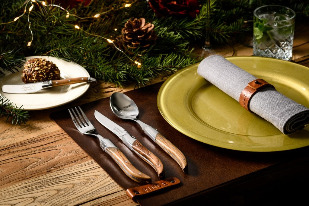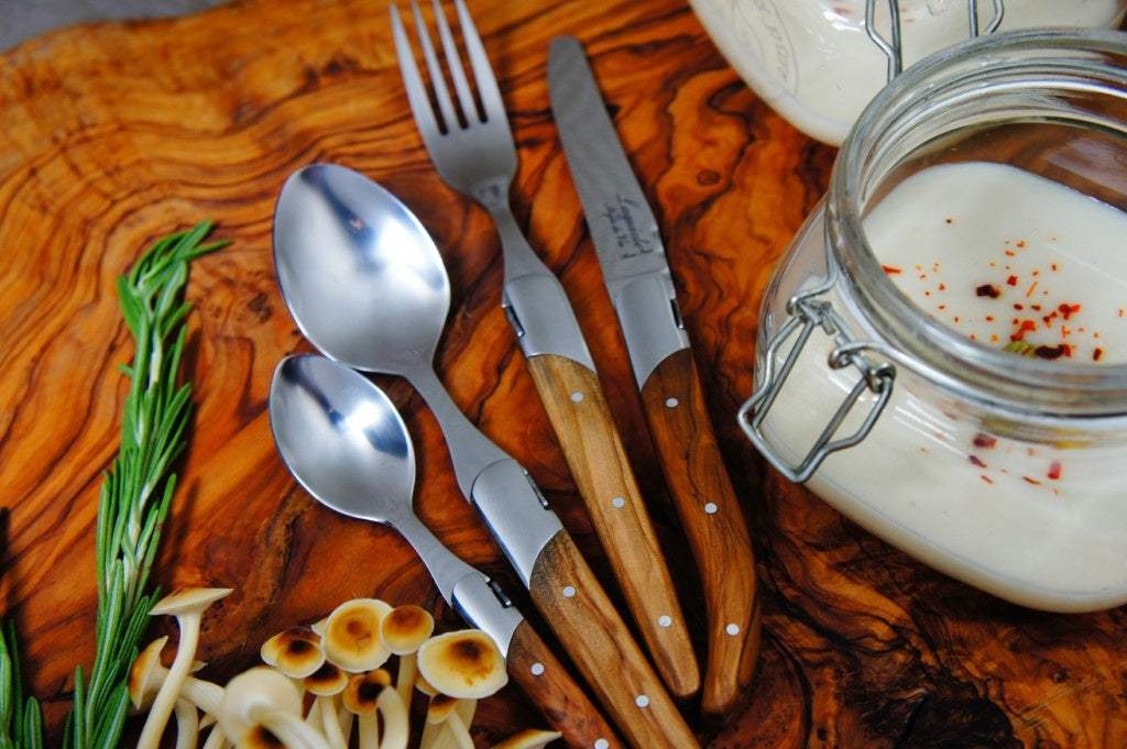 Breng warmte en elegantie naar je tafel met het Luxury Line Couvert Olijfhout van Laguiole Style de Vie. Deze 16-delige bestekset combineert hoogwaardig roestvrij staal met het natuurlijke karakter van olijfhout, wat zorgt voor een luxueuze en tijdloze uitstraling. Perfect voor wie van dineren een beleving wil maken.