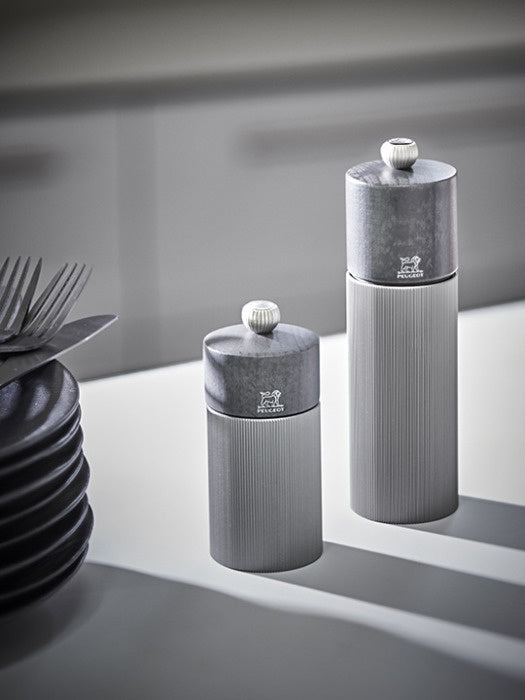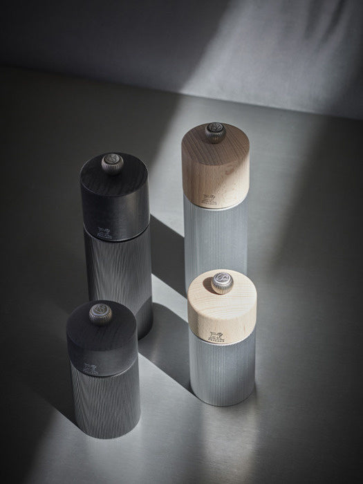 De Peugeot France Line Manuele Zoutmolen Graphite & Carbone (18 cm) is een verfijnde combinatie van hout en aluminium in een stijlvolle grafietkleurige afwerking. Deze elegante molen belichaamt het Franse vakmanschap van Peugeot en voegt een moderne toets toe aan elke tafel of keuken.