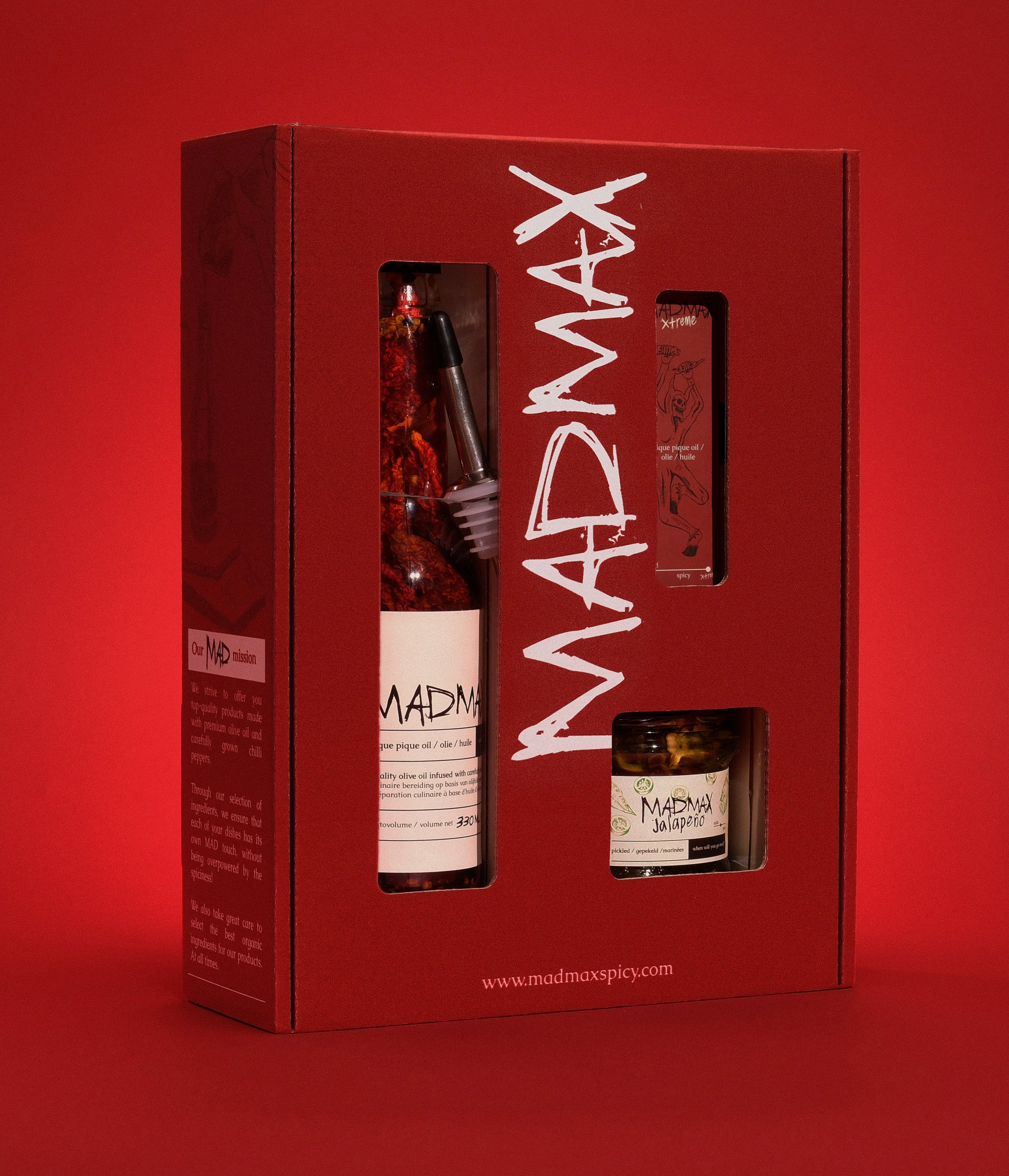 Op zoek naar een heet cadeau voor een vriend die van pit houdt? De Madmax Giftbox is een smaakexplosie verpakt in één stijlvolle doos! Geproduceerd in België en 100% biologisch, deze giftbox bevat drie unieke chili-olijfolies: