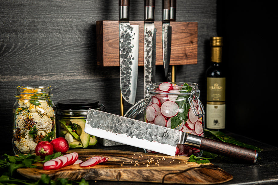 Dit stijlvolle messenblok laat je messen prachtig uitkomen; onmisbaar voor messen met een fraai bewerkt lemmet. Het blok is aan... Lees meer