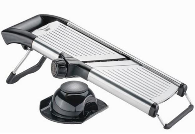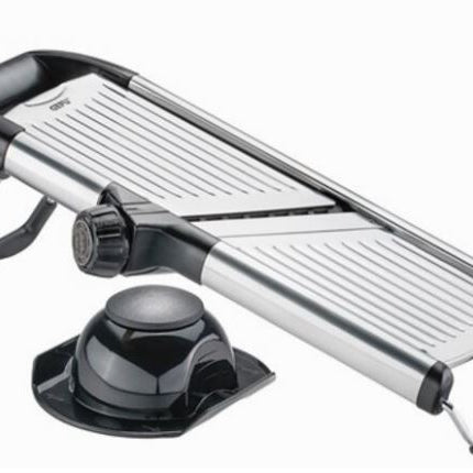 Met de Gefu Mandoline Volari snijd je groenten in perfecte plakken of reepjes – snel, veilig en met professionele precisie. Dankzij de scherpe RVS snijplaat en de praktische draaiknop stel je eenvoudig de gewenste snijdikte in: van 1 tot 9 mm voor schijfjes en 4,5 of 9 mm voor juliennereepjes.