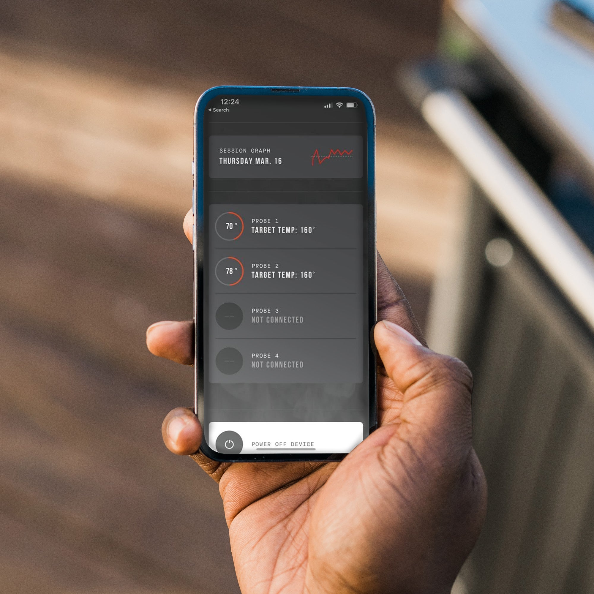 Stel de temperatuur in op het digitale bedieningspaneel of uw smartapparaat en de DigitalFan ™ handhaaft de gewenste kooktemperatuur. De GravityFed ™ houtskooltrechter bevat meer dan 12 uur houtskool en de zwaartekracht zorgt ervoor dat je constant brandstof hebt voor het vuur.