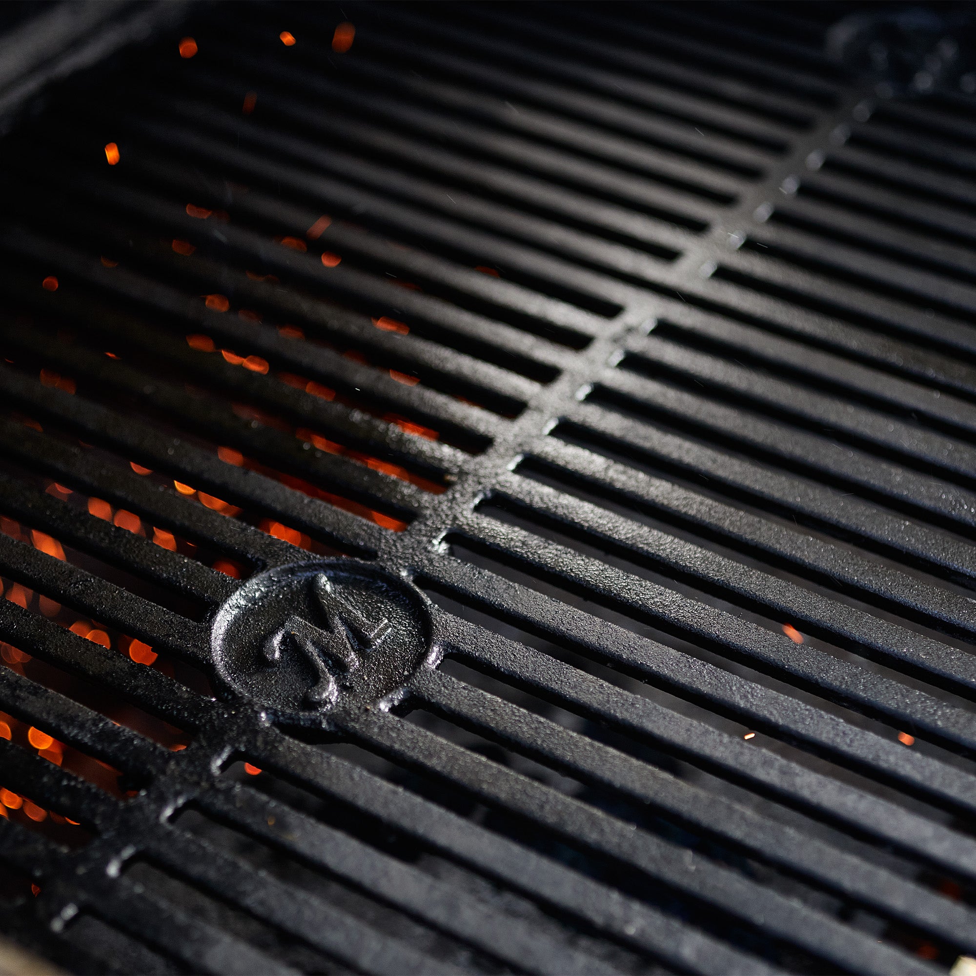 De omkeerbare gietijzeren roosters zijn perfect om te roken of te schroeien en in slechts 13 minuten kan deze grill 370 ° C bereiken. Beheers de kunst van houtskoolgrillen en roken met Masterbuilt.