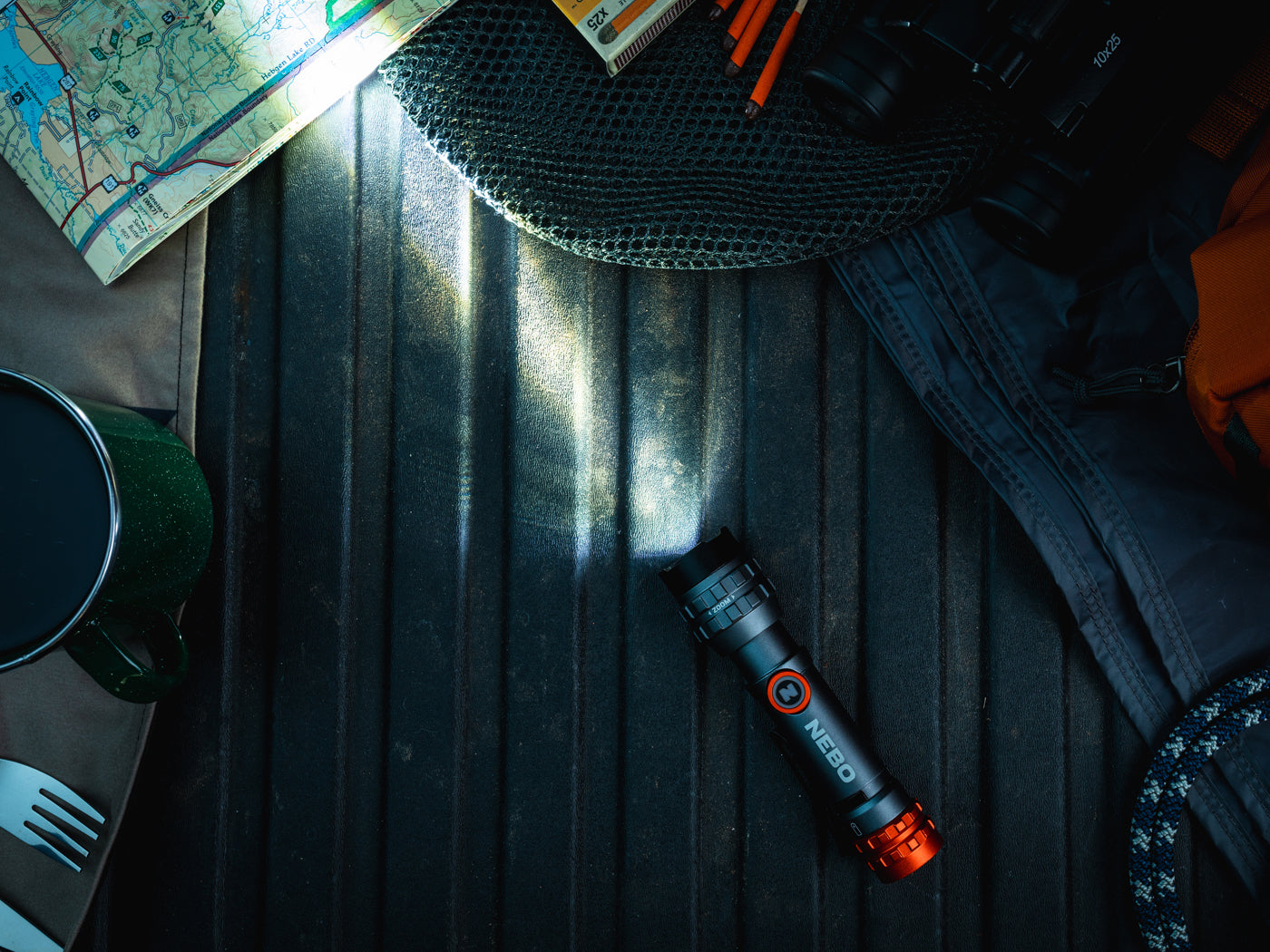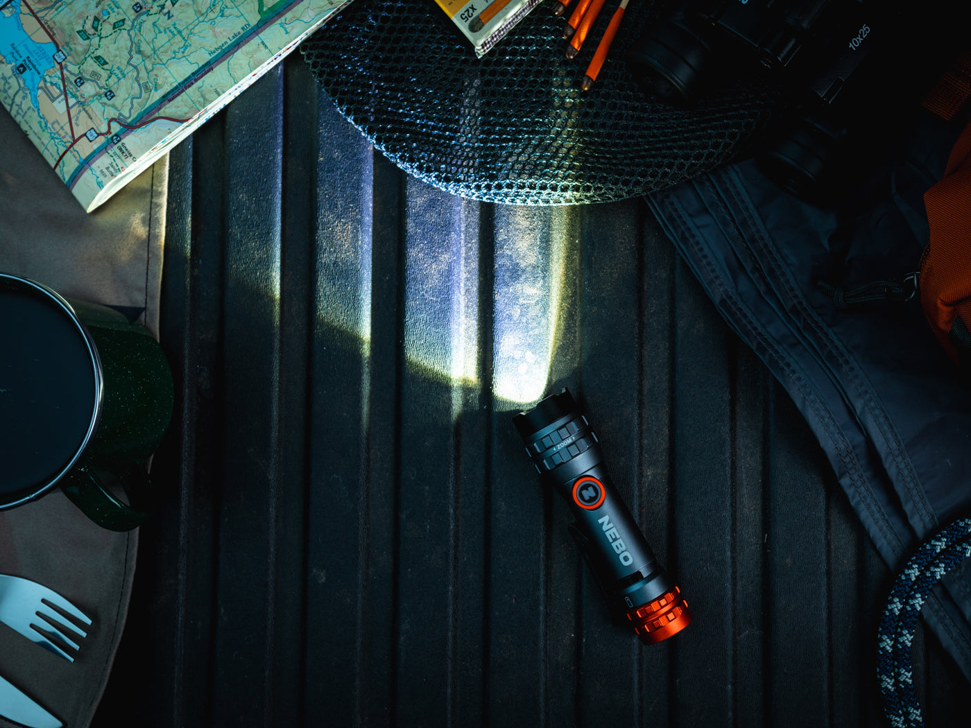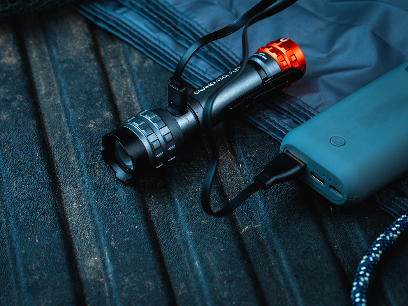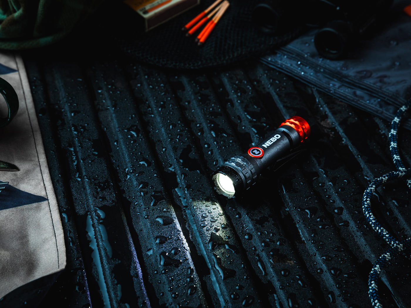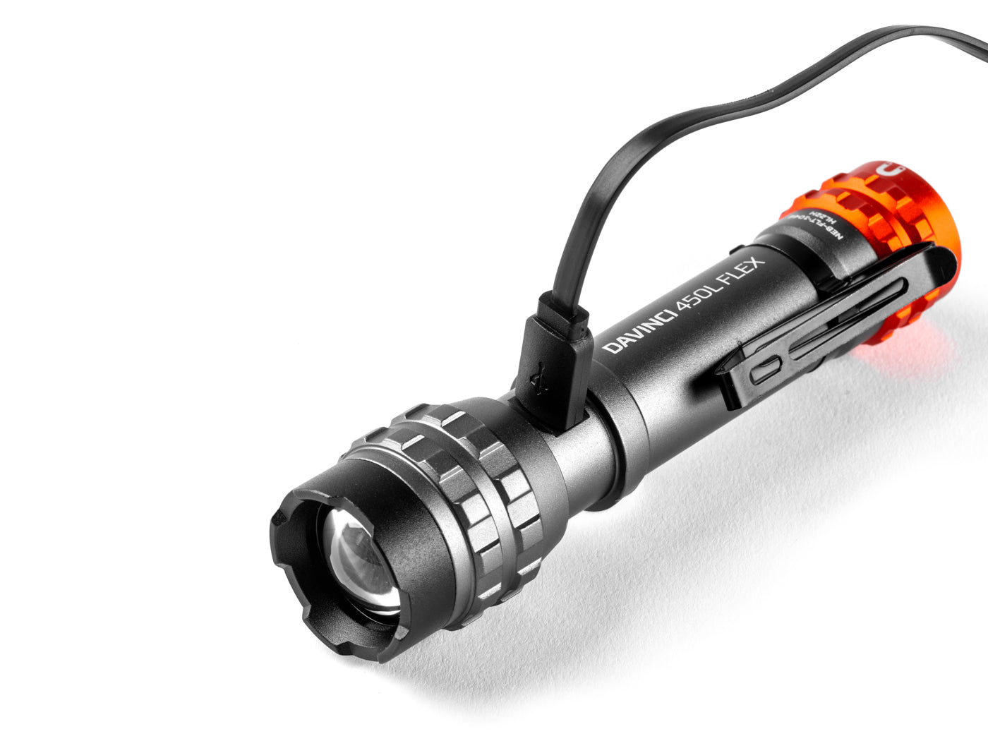 De NEBO 450L Flex is IPX4 dompeldicht, voorzien van een robuuste stalen clip, en wordt geleverd met een USB-oplaadkabel.