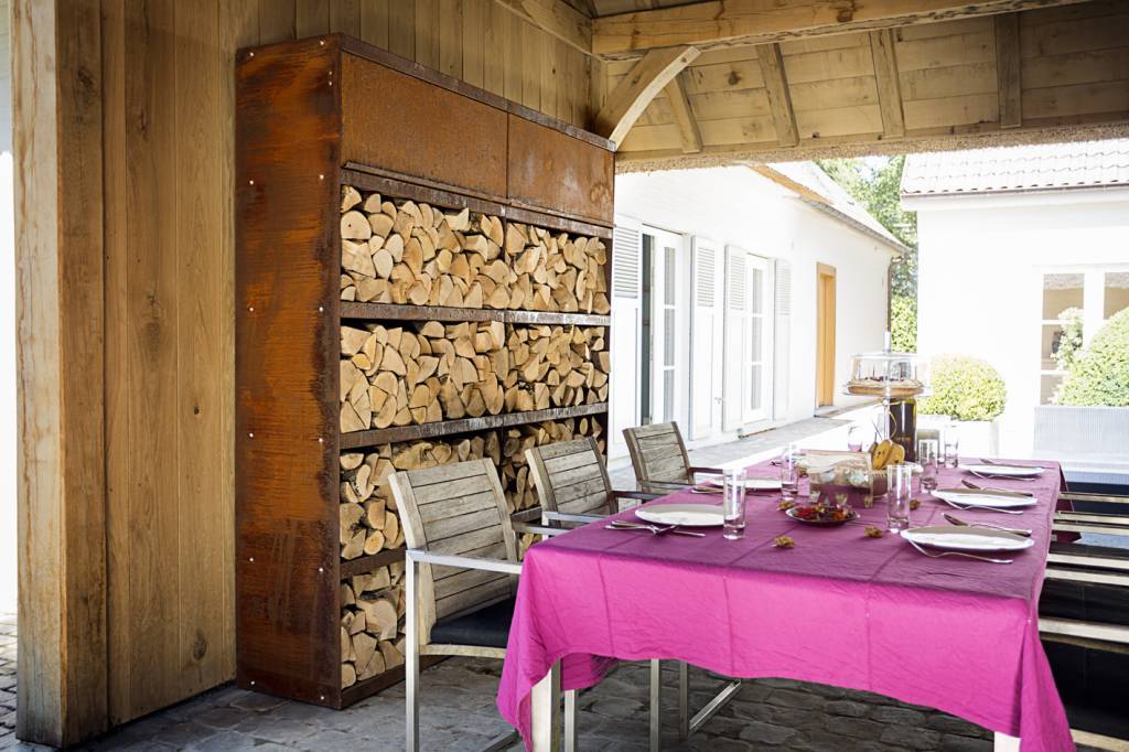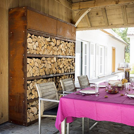 -  Gemaakt van duurzaam cortenstaal: De houtopslag kan het hele jaar door buiten blijven staan