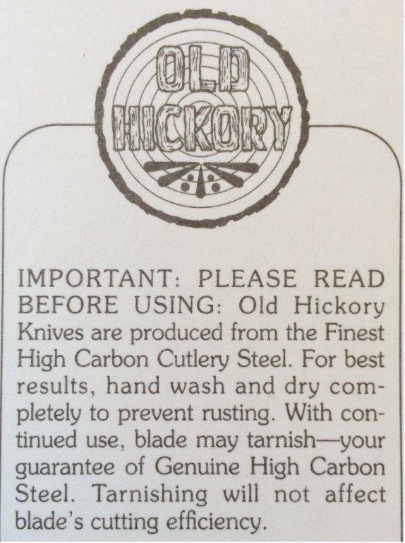 De Old Hickory messen zijn van het geharde 1095 carbon steel gemaakt en het handvat van lokaal gewonnen hardhout.
