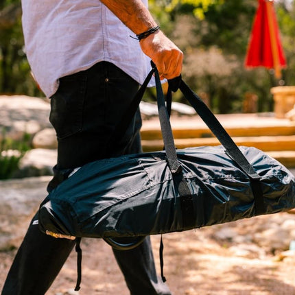 Bescherm je pizzaoven Koda 12 van Ooni tegen de elementen èn neem 'm gemakkelijk mee met deze Ooni Koda 2-in-1 draagtas en hoes. Deze draagtas en hoes is elastisch voor een goede, beschermende pasvorm. En dankzij de gewatteerde handvatten draag je de tas comfortabel, waar de volgende pizzaparty ook maar plaatsvindt!  De draagtas is voorzien van duurzame riemen, aluminium gespen en een lus om de gasregelaar onderweg vast te zetten. De draagtas/ hoes is gemaakt van 100% waterdicht stevig polyester.