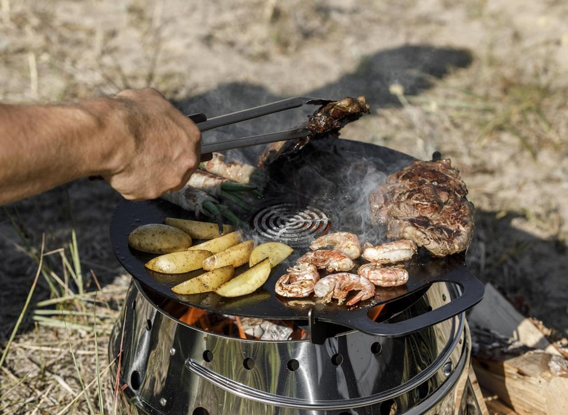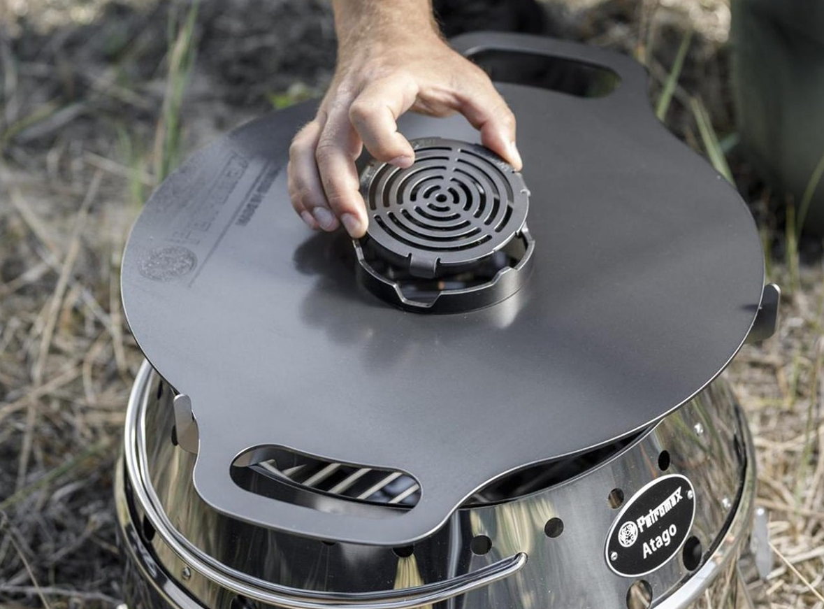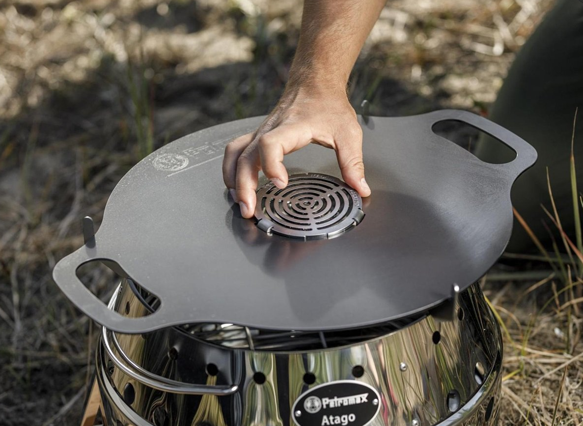 Daarnaast is het inzetstuk ideaal om een Dutch Oven, skillet of percolator stabiel direct boven de vlammen te plaatsen. Het zorgt ervoor dat accessoires stevig blijven liggen en optimaal profiteren van de hitte. Plaats het inzetstuk in het midden van de grillplaat of op de Atago cooking support – beide opties zijn mogelijk.