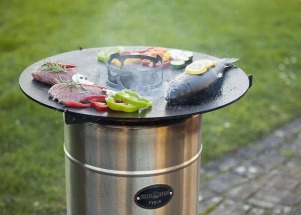Pyron grill plate, met deze grill plaat tovert u de Pyron vuurton in een handomdraai om tot een volwaardige kookunit! Koken met de Pyron grill plate is een bijzondere beleving! Of u nu eieren bakt, groenten langzaam kookt, een malse biefstuk grilt of een visgerecht gaat bereiden, met de Pyron ontdekt u een compleet nieuwe wereld vol mogelijkheden voor buiten koken.