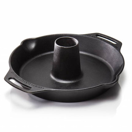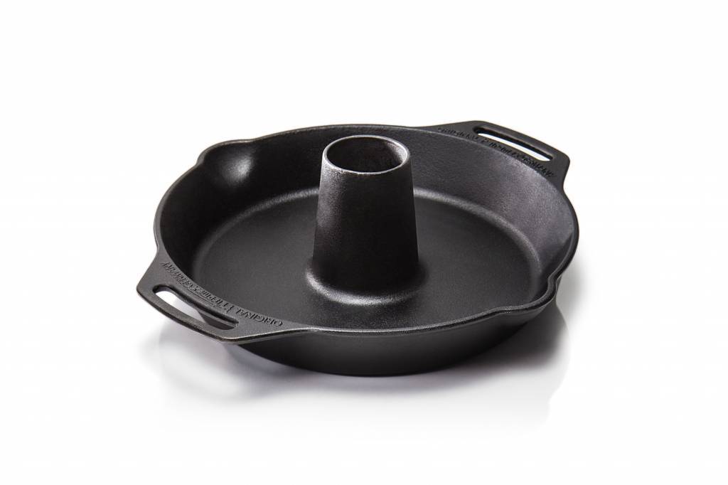 De braadpan is voorzien van een ring voor kruiden, specerijen en groenten, en in het midden bevindt zich een kegel met een speciale plek voor bijvoorbeeld kruiden, bier, wijn of bouillon. Terwijl het vlees gaart, stromen de overtollige vetten en vleessappen in de lekbak. Zo krijgt je gevogelte een knapperig vel van buiten en mals vlees van binnen.