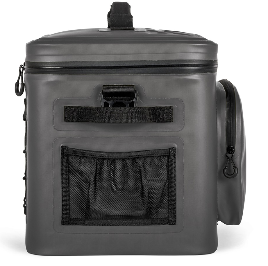 De tas is ontworpen voor maximale outdoor-functionaliteit: met vier extra opbergvakken is er ruimte voor accessoires zoals aanmaakmateriaal, een aansteker of camp-tools. Aan de achterzijde vind je een geïntegreerde flesopener, zodat je altijd startklaar bent. Dankzij de schouderband en stevige draaggrepen neem je de koeltas comfortabel overal mee naartoe. De montage-ogen voor karabijnhaken maken het mogelijk om de tas veilig te bevestigen in een boot, auto of aan je uitrusting.