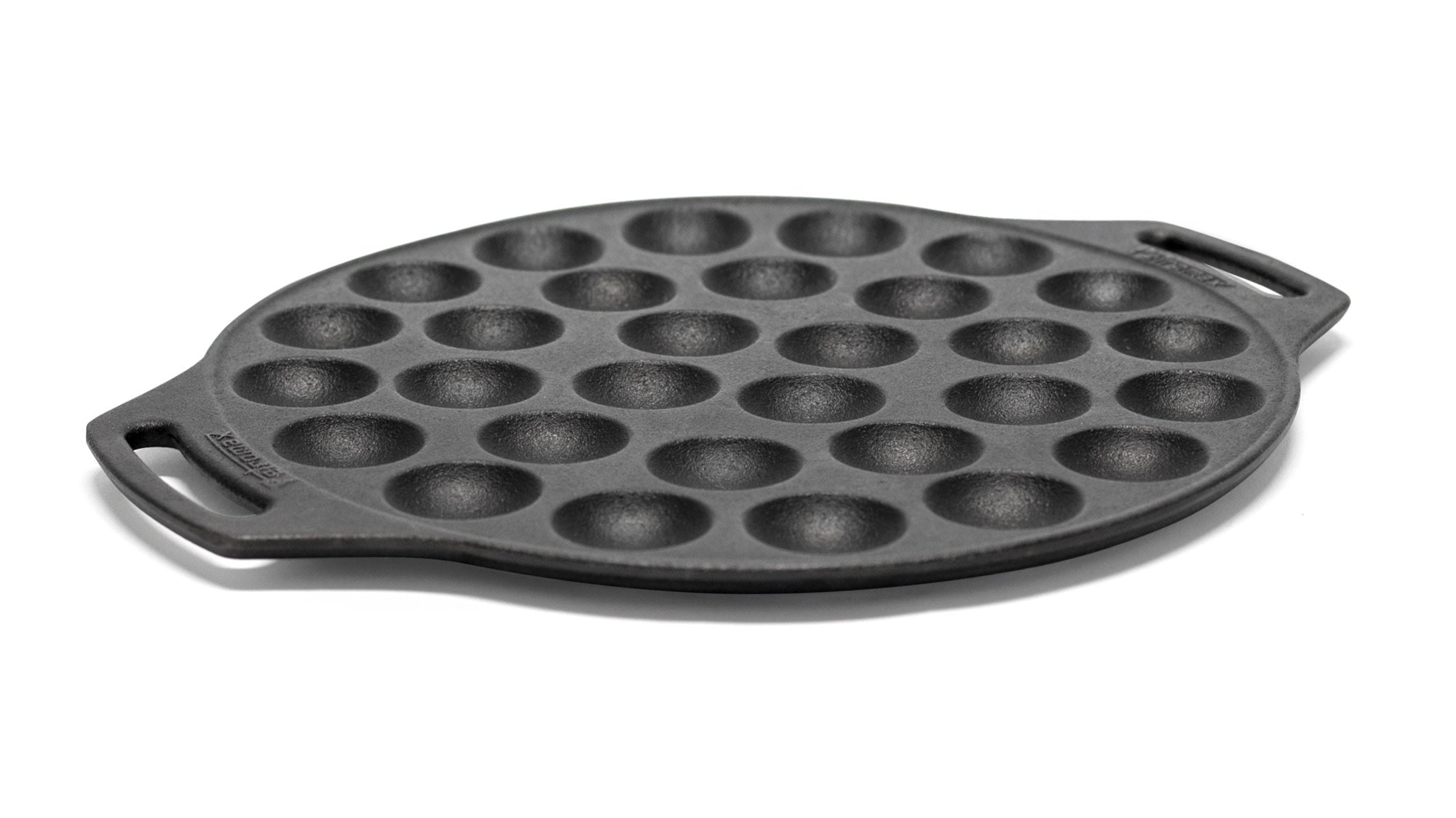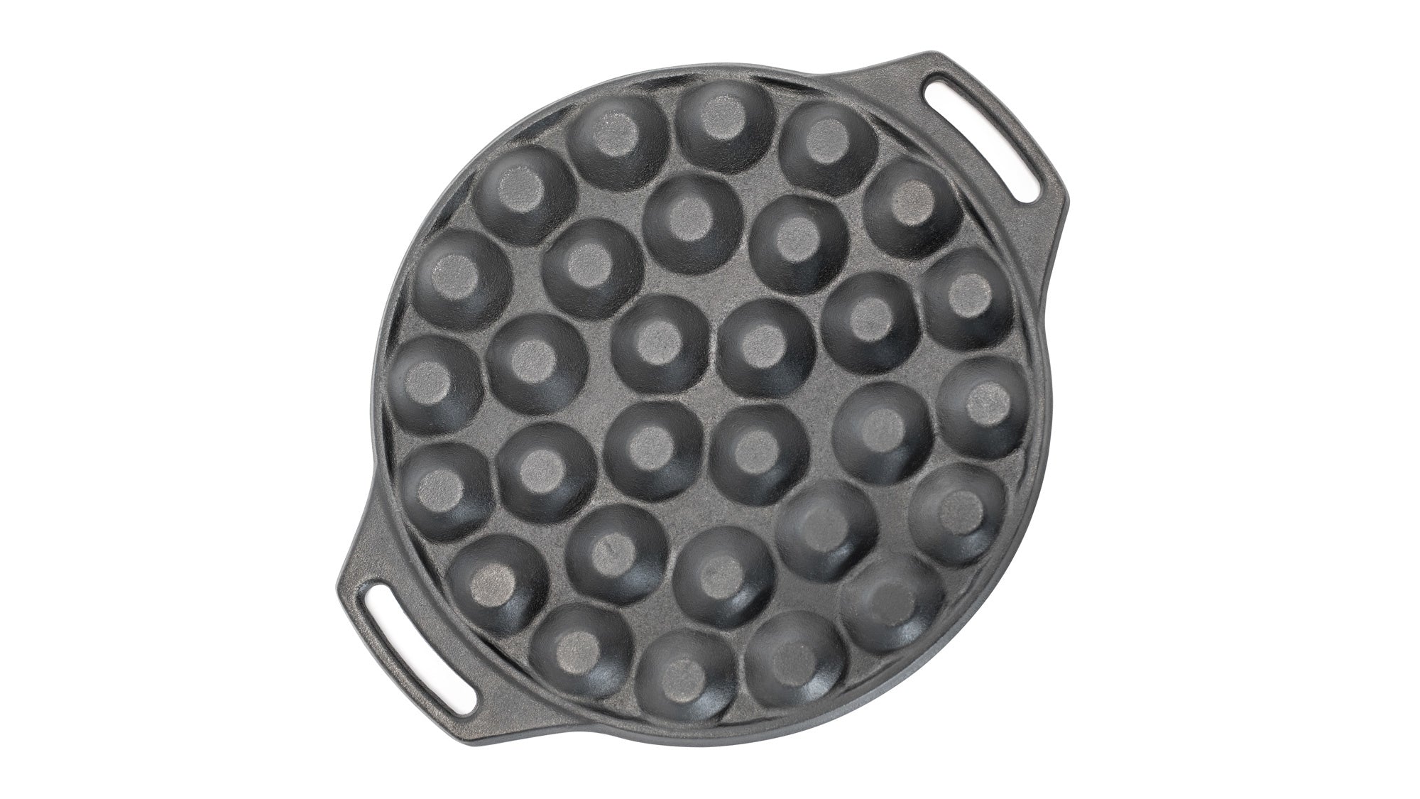 Naast poffertjes kun je ook experimenteren met andere kleine gerechtjes zoals mini gehaktballetjes, eitjes of amuses. De gietijzeren pan is geschikt voor gebruik op open vuur, boven een driepoot, een Petromax Atago of zelfs op het fornuis dankzij de vlakke onderzijde. De twee stevige handgrepen zorgen voor een veilige en comfortabele grip tijdens het koken.